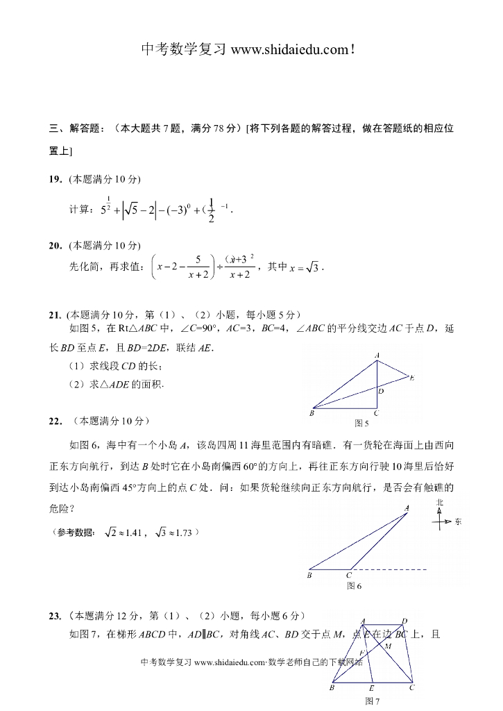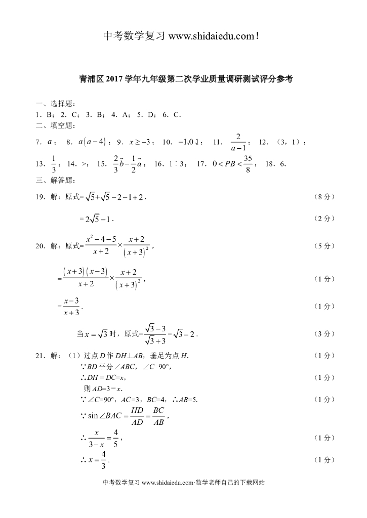 上海市青浦区中考二模数学试卷--附答案.doc