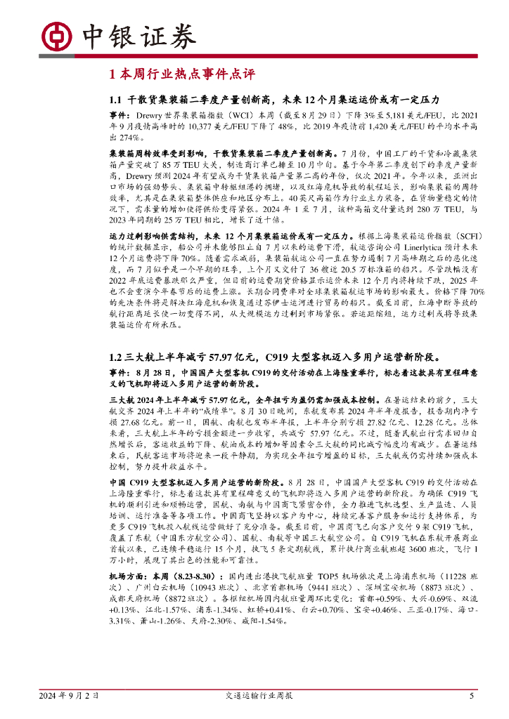 中银证券:交通运输行业周报:三大航上半年减亏57.97亿元,丰巢正式提交IPO申请.pdf