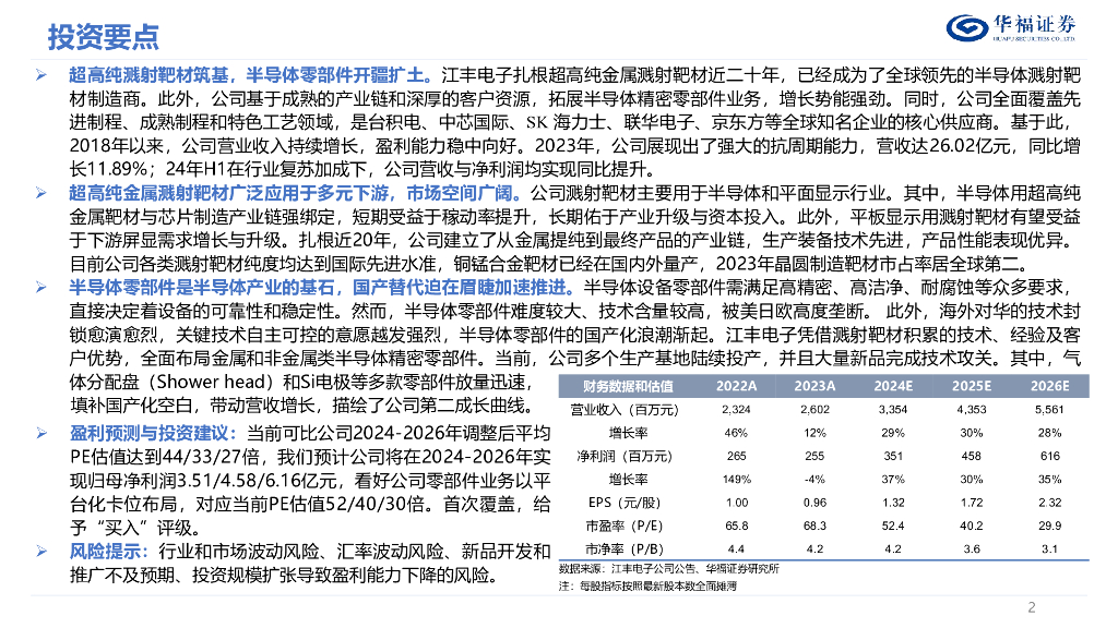 华福证券:江丰电子首次覆盖:超高纯溅射靶材领军者,半导体零部件强劲成长.pdf