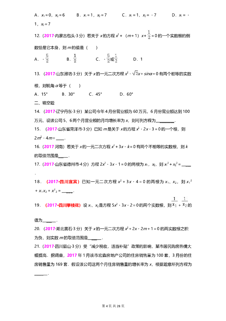 数学全国中考真题分类汇编专题14 一元二次方程及其应用.doc