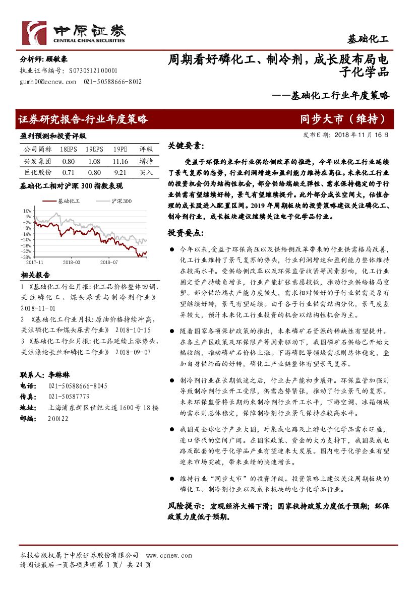 中原证券:基础化工行业年度策略:周期看好磷化工、制冷剂,成长股布局电子化学品.pdf