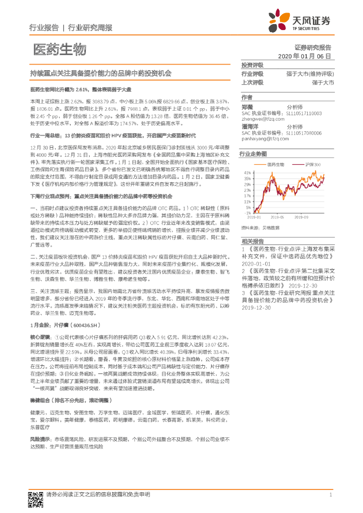 天风证券:医药生物行业研究周报:持续重点关注具备提价能力的品牌中药投资机会.pdf