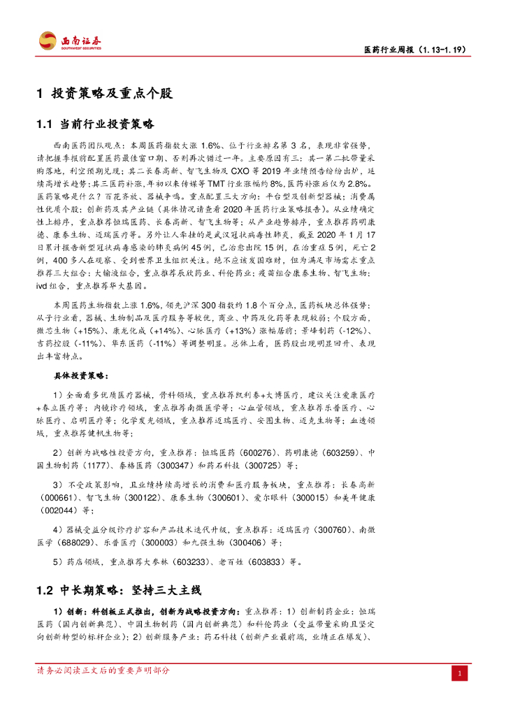 西南证券:医药行业周报:第二带量采购利空落地,进入战略配置优质医药标的新周期.pdf