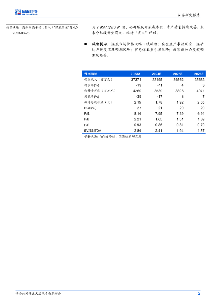 国海证券:山煤国际(600546)-2024年一季报点评:Q1产销量下滑,煤价下跌影响业绩.pdf