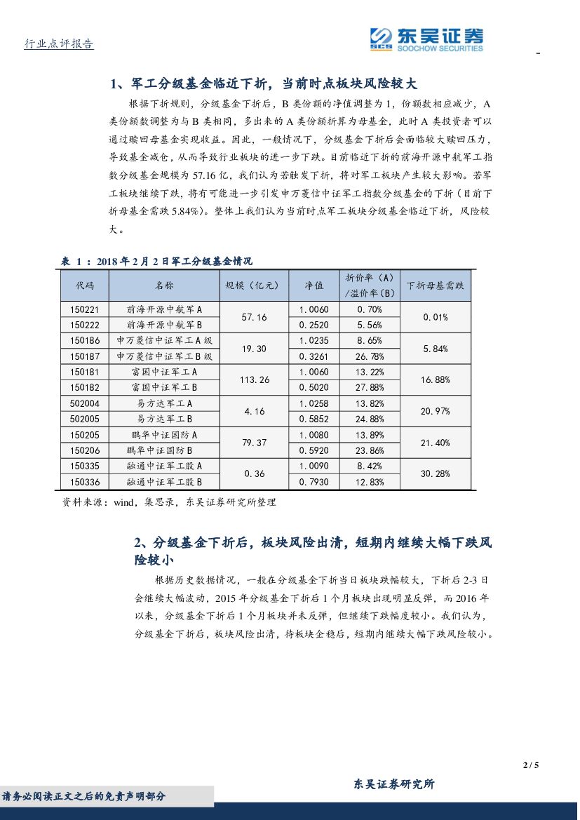 东吴证券:军工板块行情点评:分级基金面临下折风险,下折后板块短期风险将出清.pdf