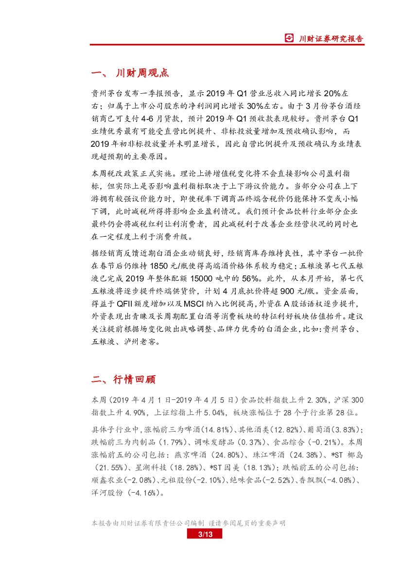 川财证券:食品饮料行业周报:贵州茅台一季度业绩亮眼,关注确定性较强的白酒板块.pdf