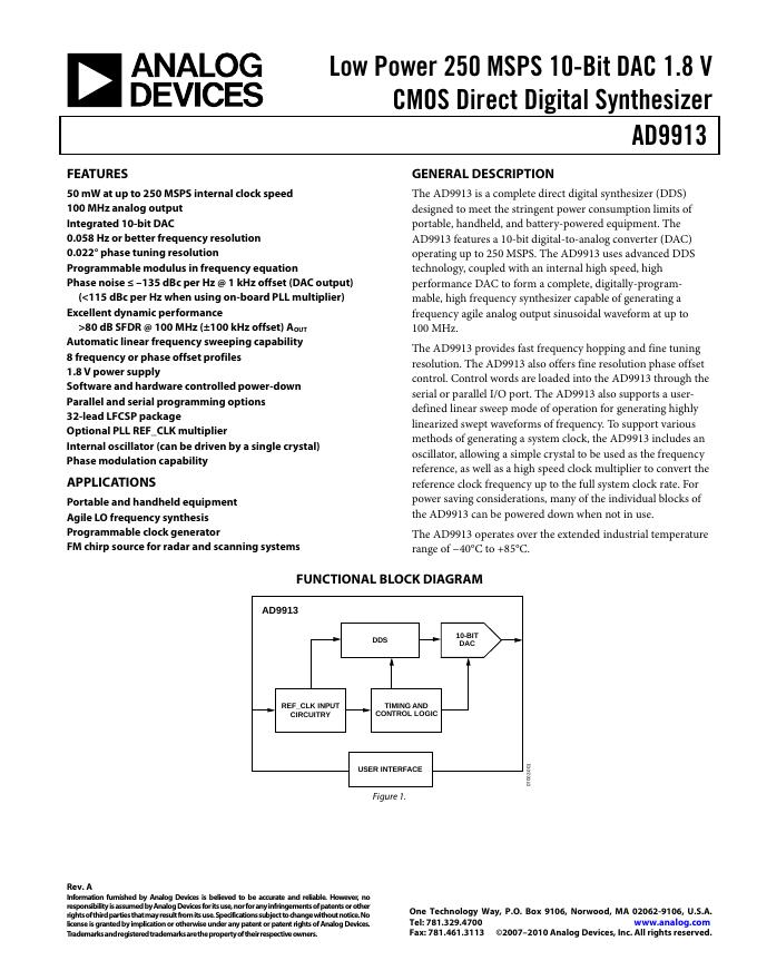 ANALOG DEVICES AD9913 英文产品数据手册 Rev A.pdf