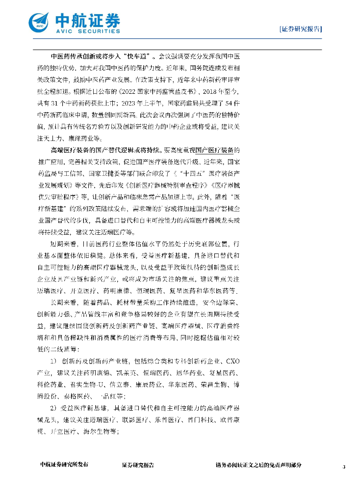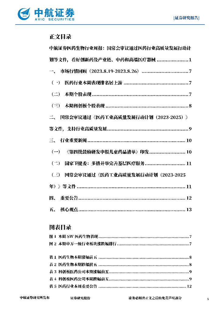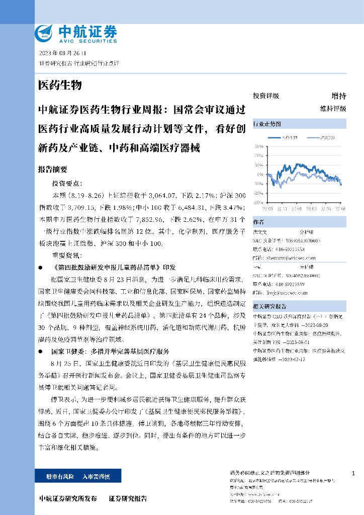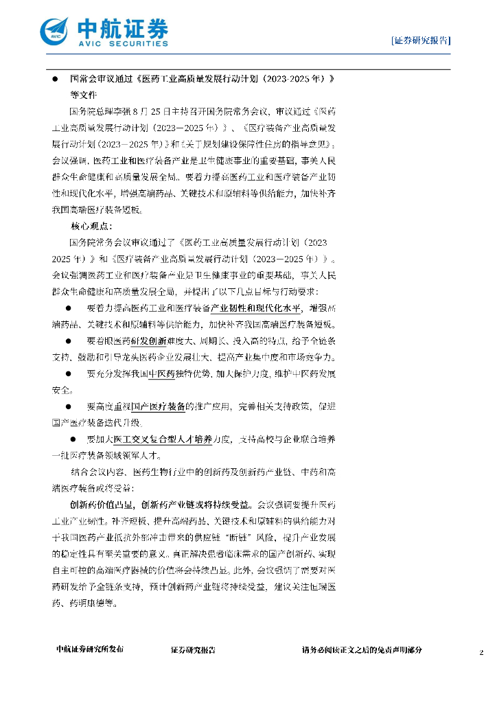 中航证券:医药生物行业周报:国常会审议通过医药行业高质量发展行动计划等文件,看好创新药及产业链、中药和高端医疗器械.pdf