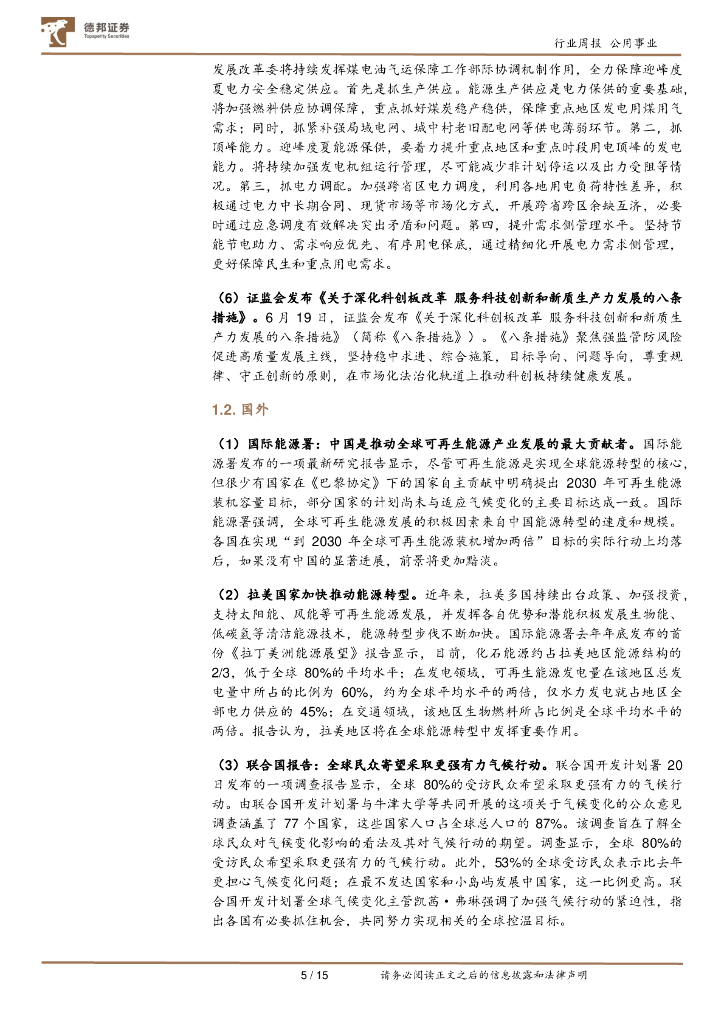 德邦证券:公用事业行业ESG周报:中国人民银行,支持上海打造国际绿色金融枢纽,推动人民币成为绿色能源计价货币.pdf
