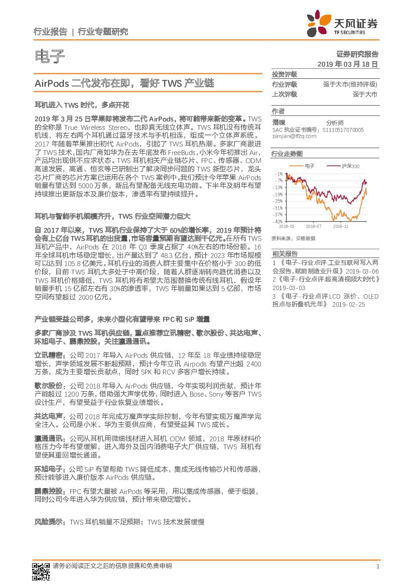天风证券:电子行业专题研究:AirPods二代发布在即,看好TWS产业链.pdf