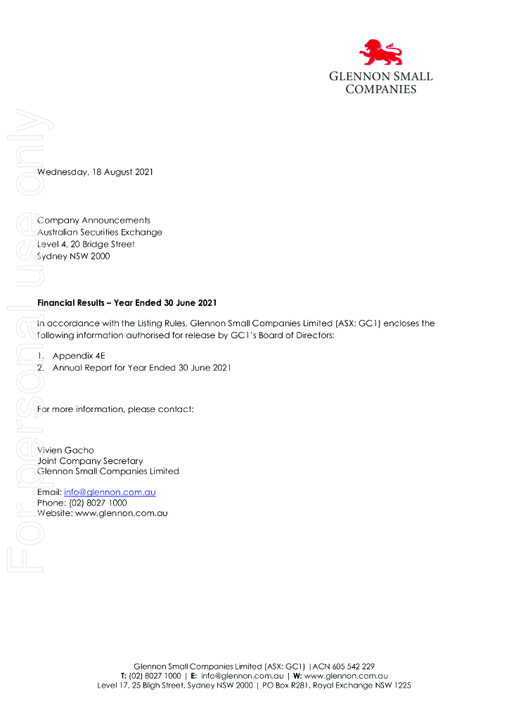 Glennon Small Companies Limited(GC1)2021财年年度报告(英文版).pdf