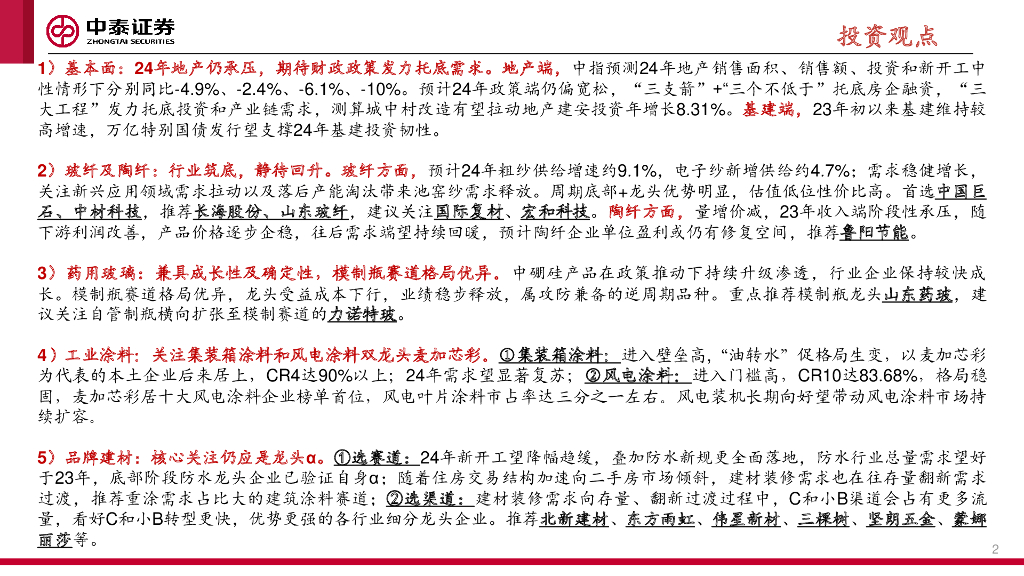 中泰证券:非金属建材行业2024年策略报告:静待总量需求回升与龙头α共振.pdf