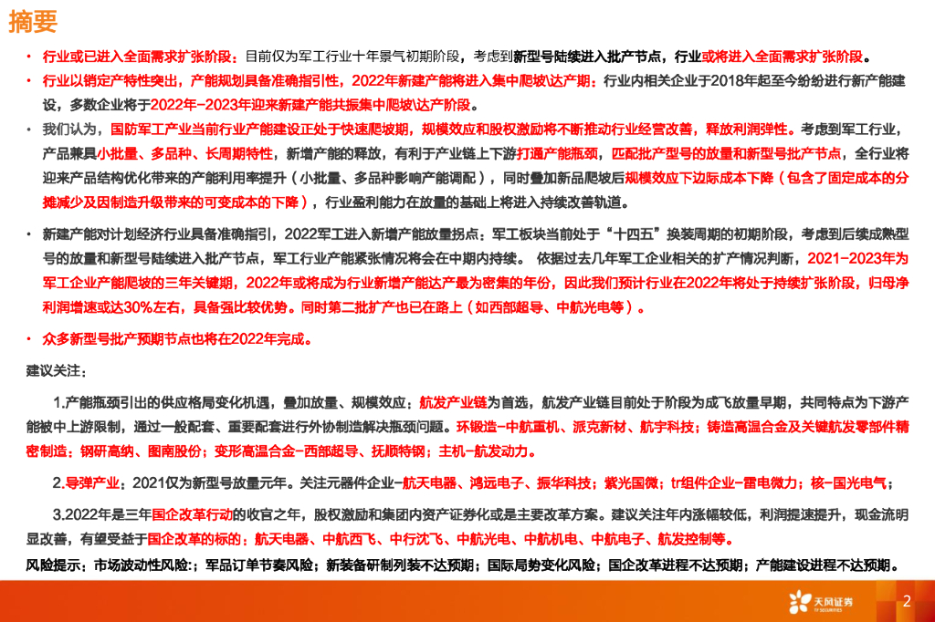 天风证券:国防军工:2022主线-产能拐点年:2022年新建产能将进入集中爬坡\达产期.pdf