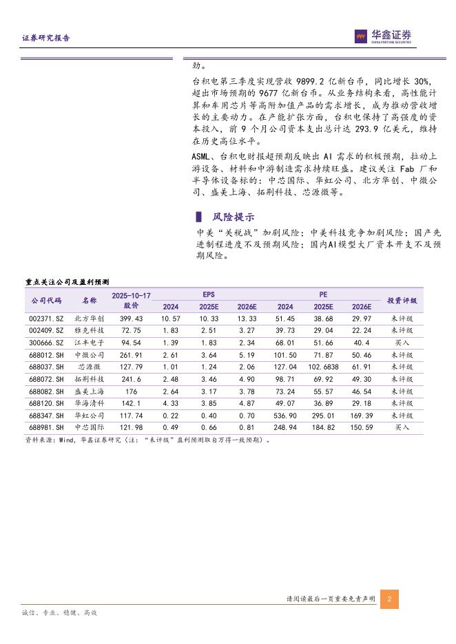 华鑫证券:电子行业周报:第二届湾芯展成功举办,ASML、台积电Q3业绩大增.pdf