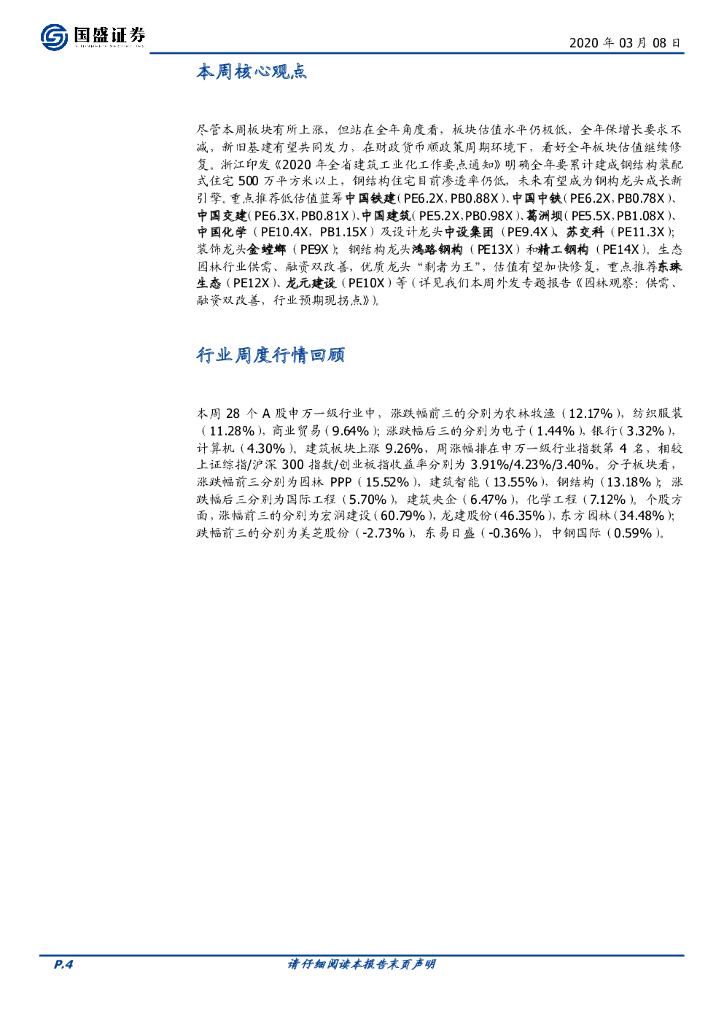国盛证券:建筑装饰行业周报:新旧基建共同发力,推荐央企、设计、钢构与园林.pdf