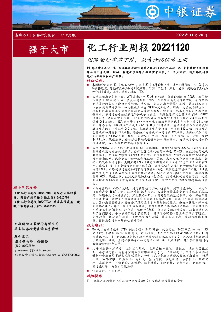 中银证券:化工行业周报:国际油价震荡下跌,尿素价格稳步上涨.pdf
