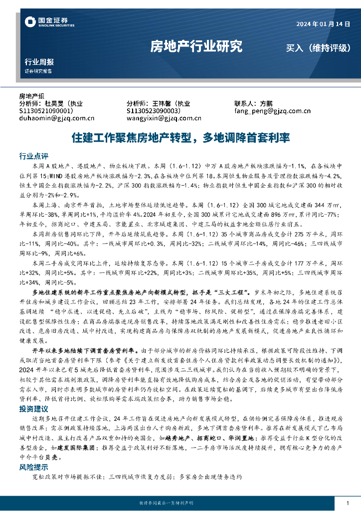 国金证券:房地产行业研究:住建工作聚焦房地产转型,多地调降首套利率.pdf