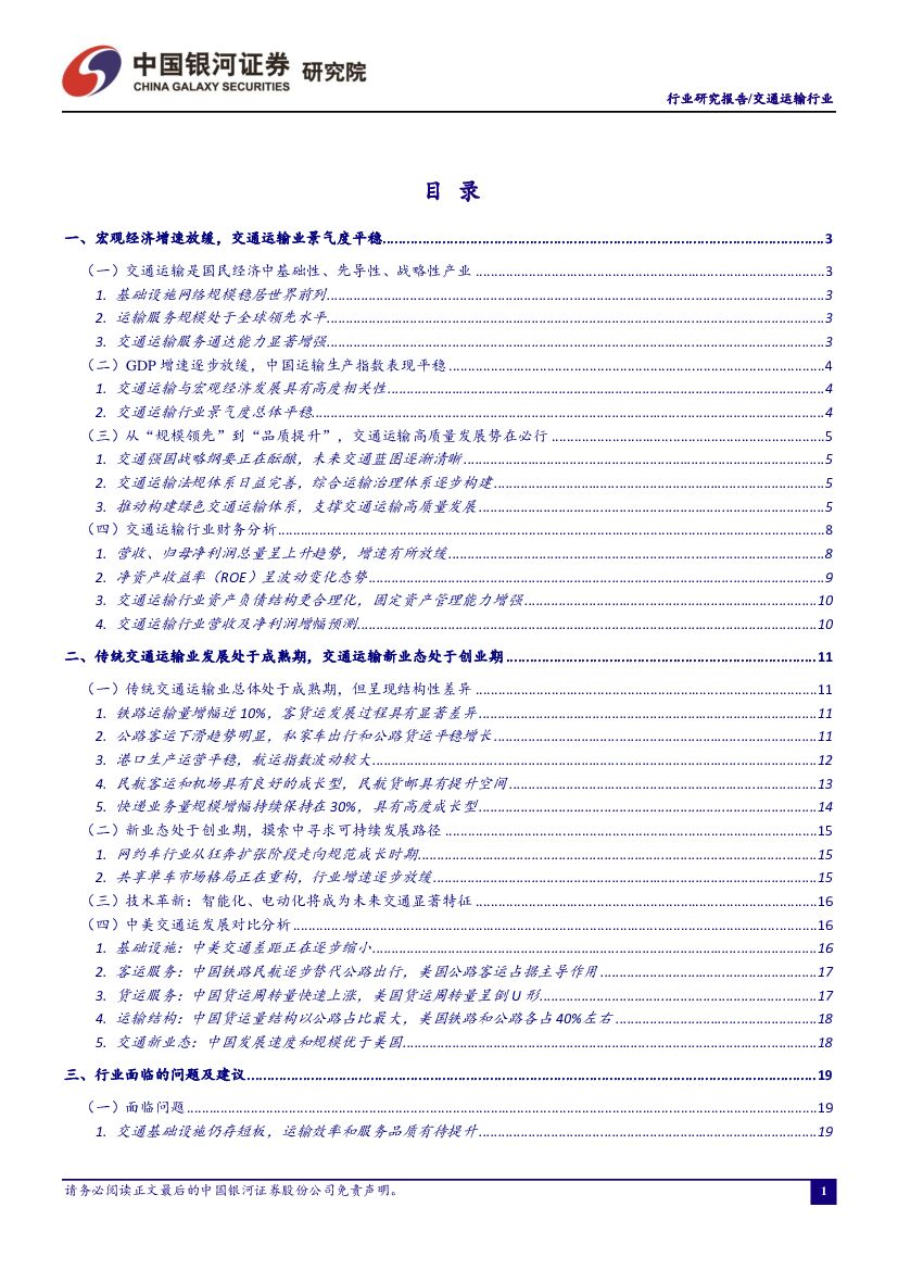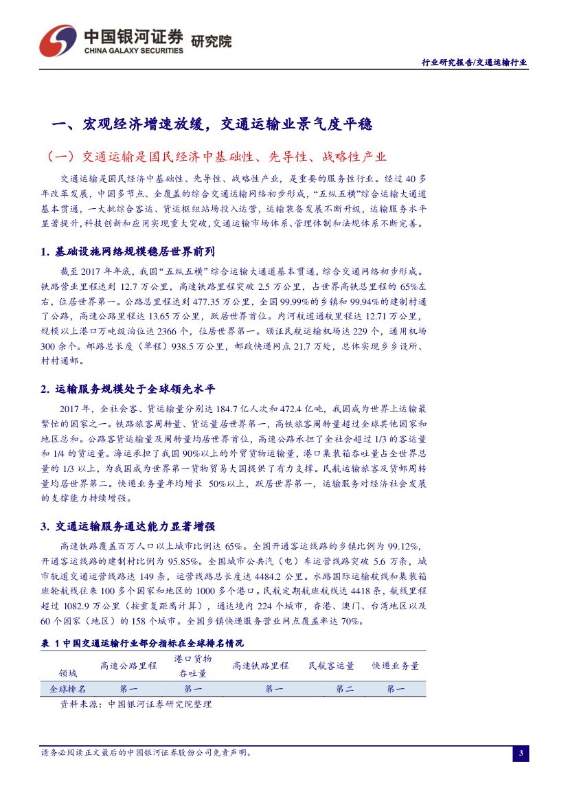 中国银河:交通运输行业-2019年3月行业动态报告:交通强国战略纲要正在酝酿,交通运输业景气度平稳.pdf