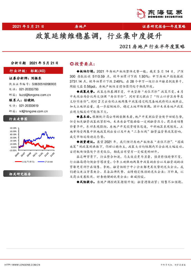 东海证券:2021房地产行业半年度策略:政策延续维稳基调,行业集中度提升.pdf
