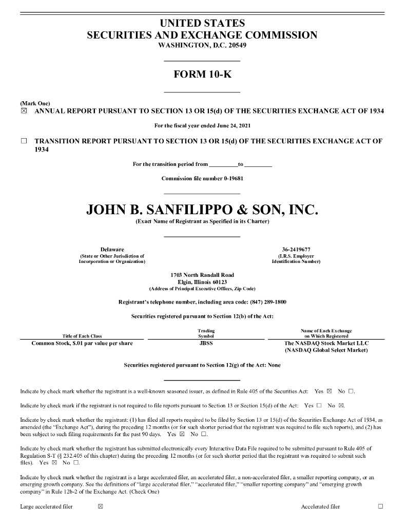 John B Sanfilippo & Son Inc.(JBSS)2021财年年度报告(英文版).pdf
