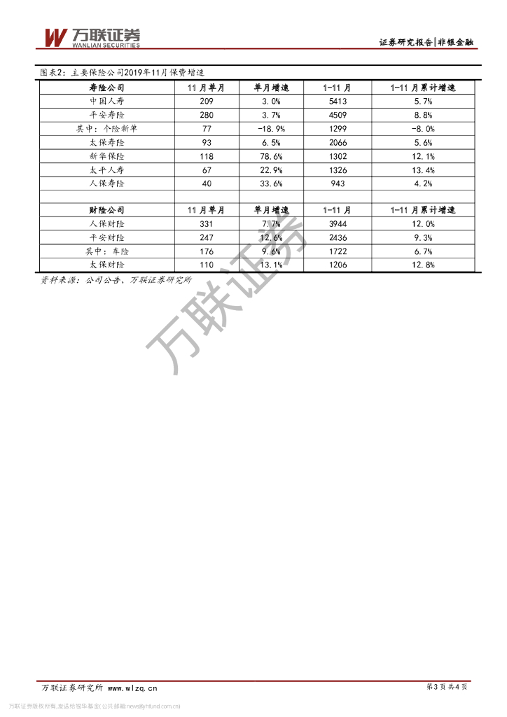 万联证券:上市险企2019年11月保费数据跟踪:平安新单降幅扩大,新华重启银保趸交.pdf