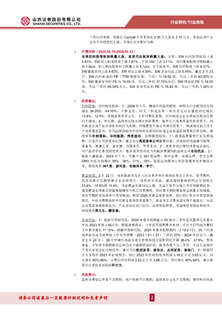 山西证券:行业研究/行业周报:安德玛预计FY2024末存货下降约15%,春节黄金珠宝消费表现靓丽.pdf