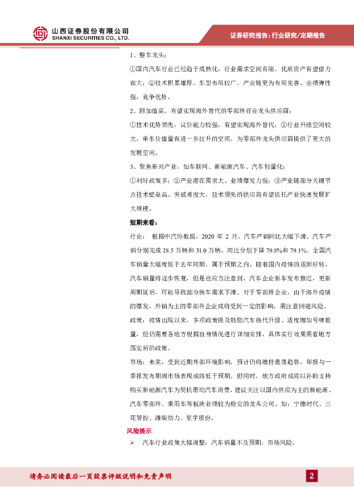 山西证券:汽车行业周报:海外疫情加重,外供汽车零部件企业将产生不利影响.pdf