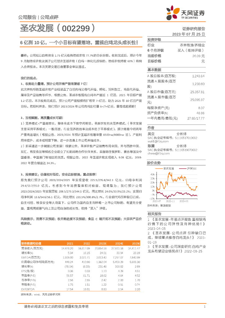 天风证券:圣农发展(002299)-6亿到10亿,一个小目标有望落地,重视白鸡龙头成长性!.pdf