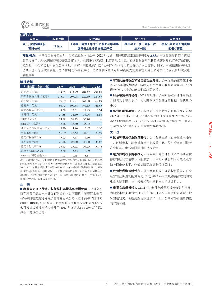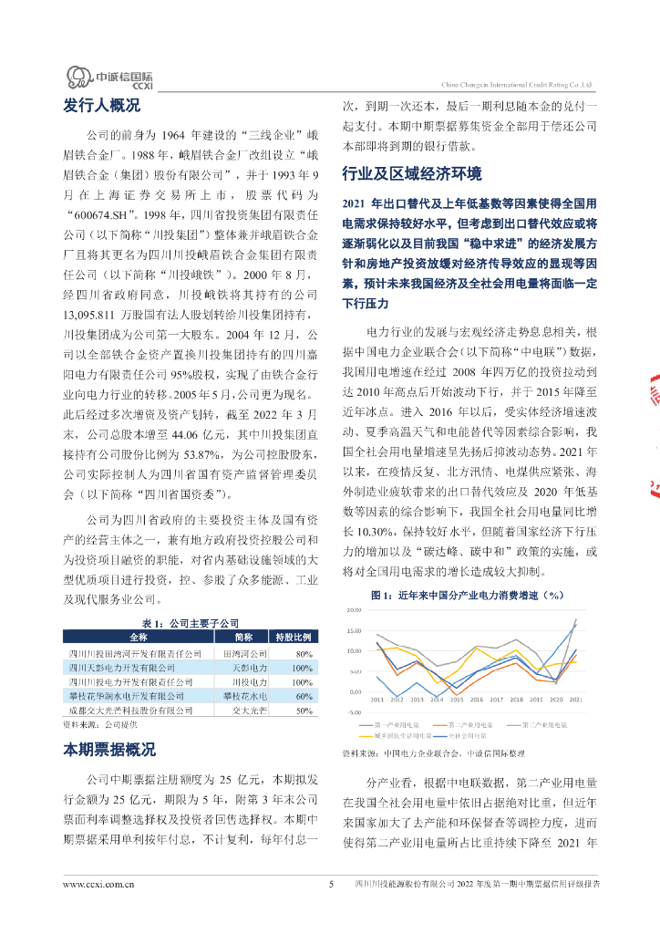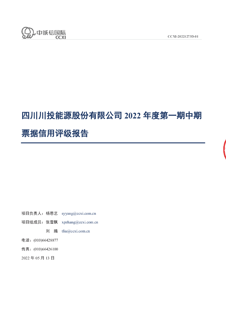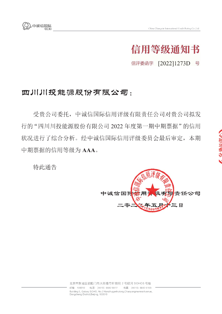 中诚信:四川川投能源股份有限公司2022年度第一期中期票据信用评级报告.pdf