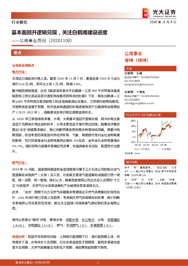 光大证券:公用事业周报:基本面回升逻辑兑现,关注白鹤滩建设进度.pdf