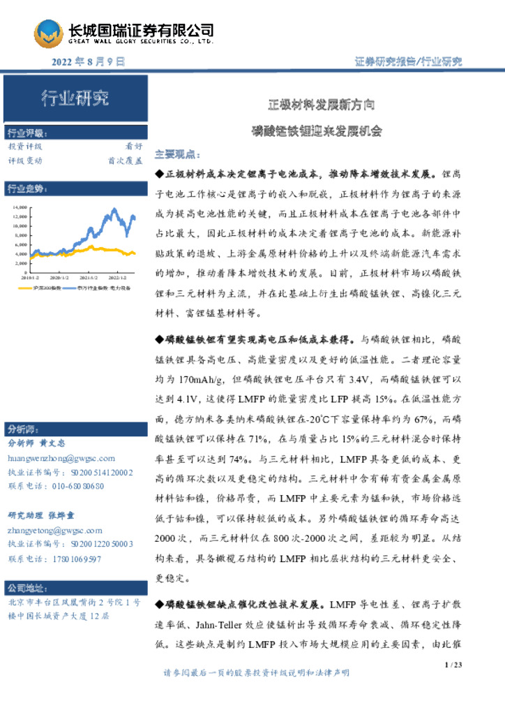 长城国瑞证券:正极材料:正极材料发展新方向 磷酸锰铁锂迎来发展机会.pdf