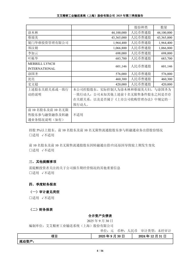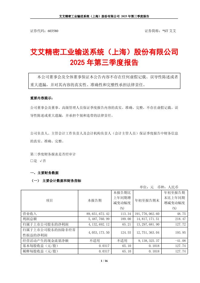 603580-*ST艾艾:艾艾精密工业输送系统(上海)股份有限公司2025年第三季度报告.pdf