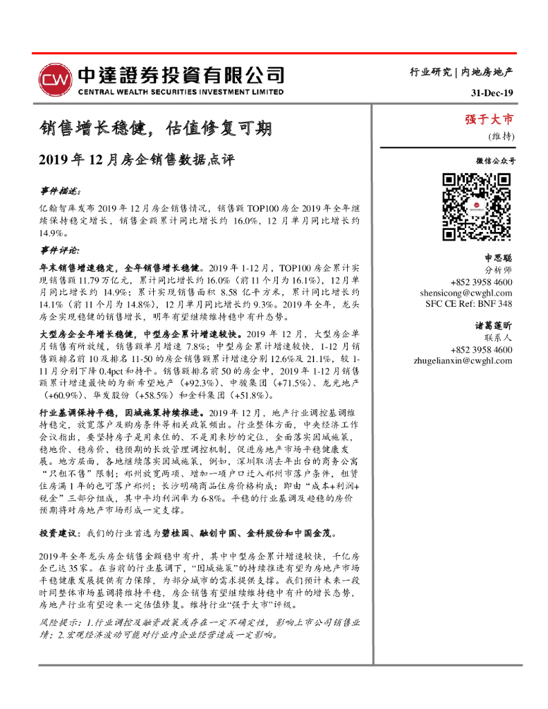 中达证券投资:2019年12月房企销售数据点评:销售增长稳健,估值修复可期.pdf