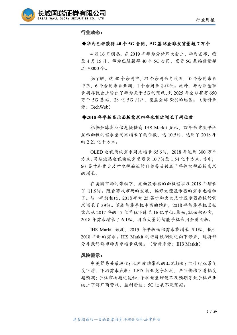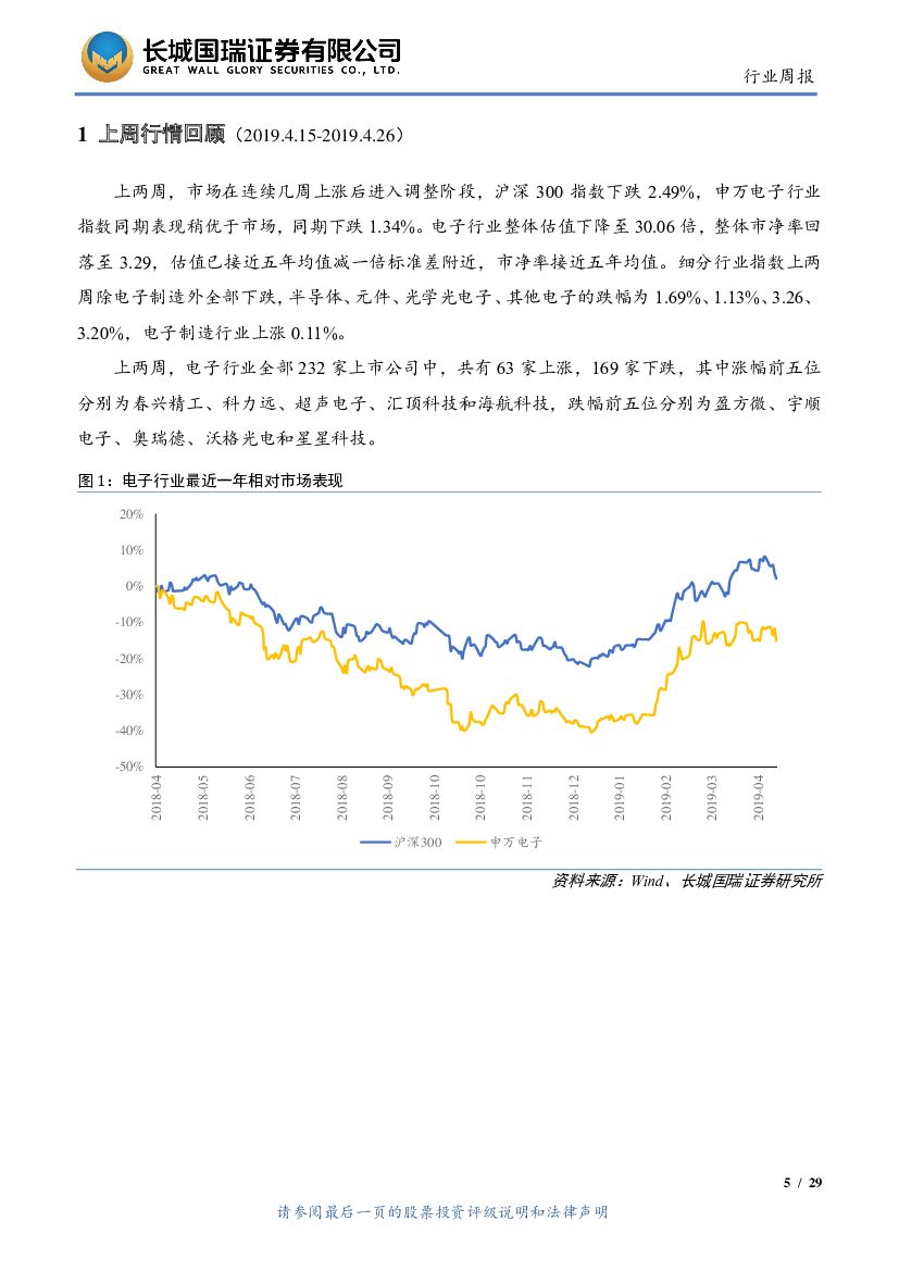 长城国瑞证券:电子行业双周报2019年第8期(总第8期):华为5G进程提速,5G产业化热度持续攀升.pdf