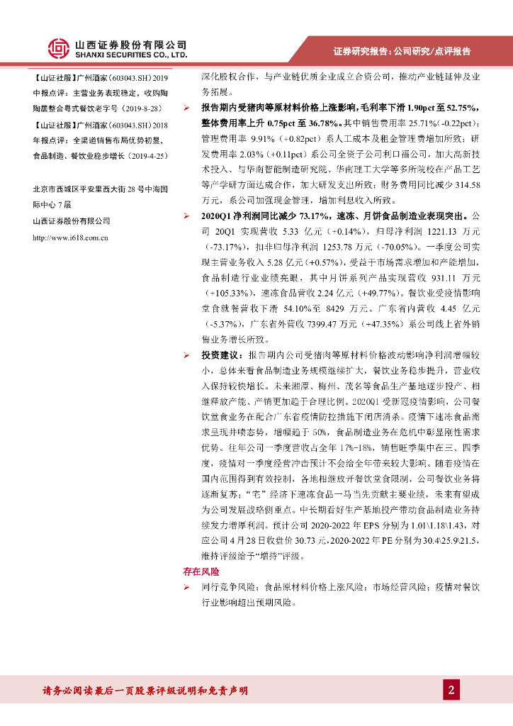 山西证券:广州酒家(603043)-原材料成本上涨拖累净利润增速,疫情下速冻食品增厚业绩.pdf