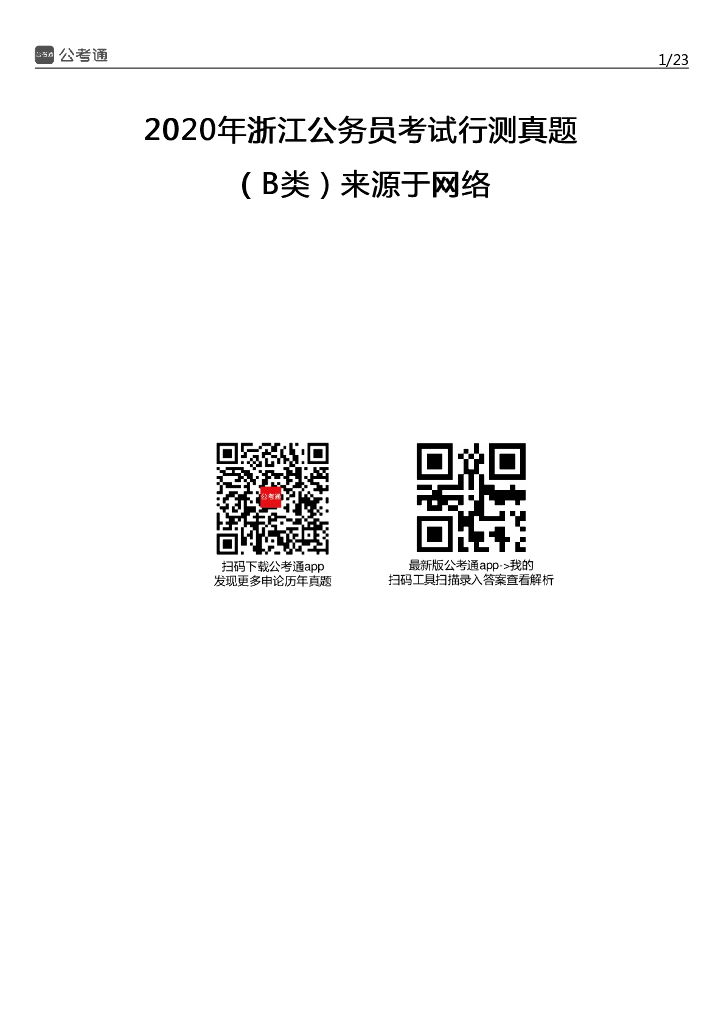 2020年浙江公务员考试行测真题及答案(B卷).pdf