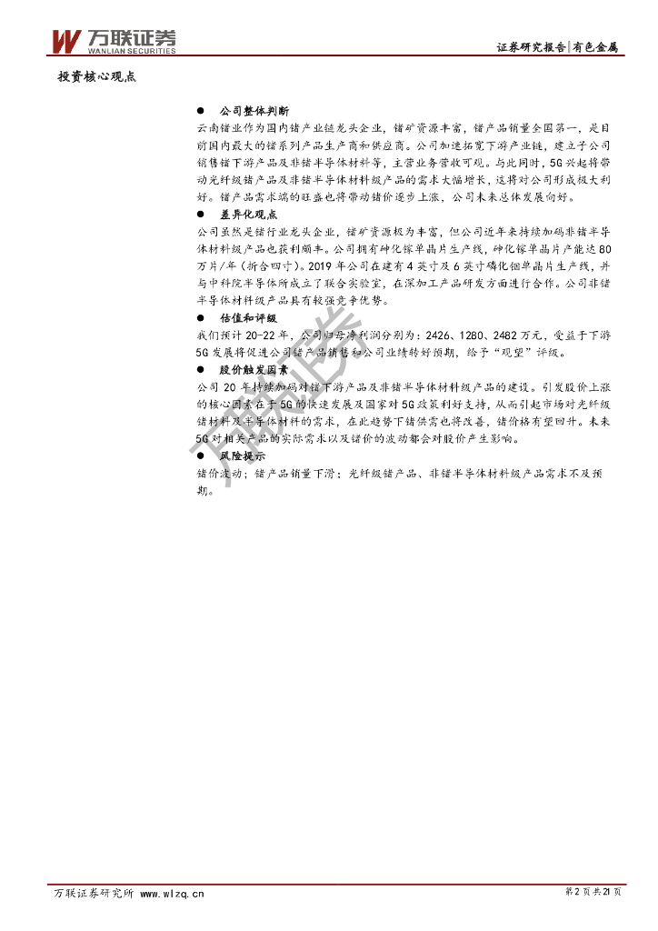 万联证券:云南锗业(002428)-深度报告:加码锗下游产品,5G发展驱动公司增收.pdf