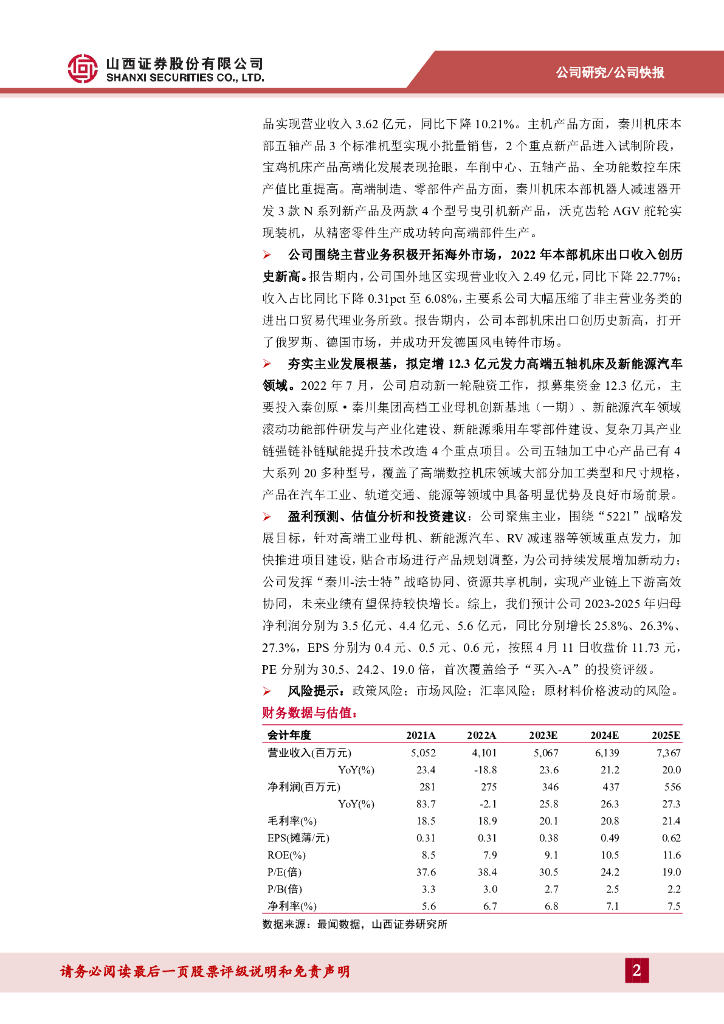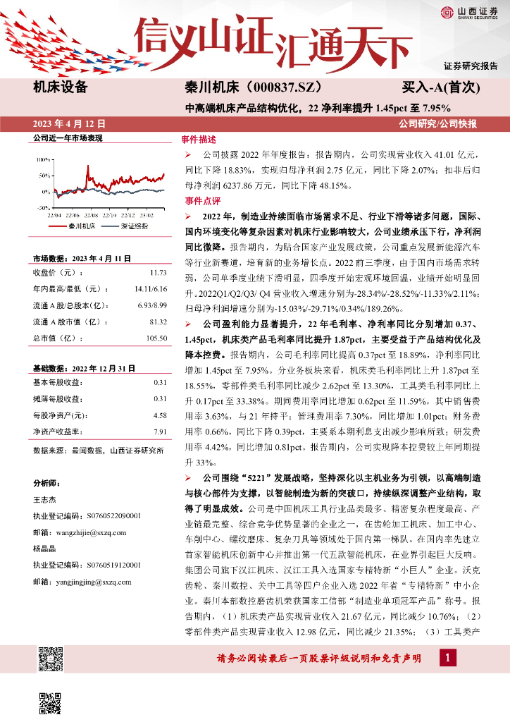 山西证券:秦川机床(000837)-中高端机床产品结构优化,22净利率提升1.45pct至7.95%.pdf