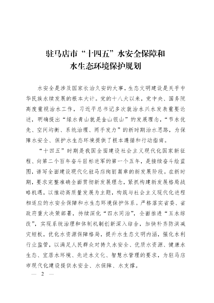 驻马店市“十四五”水安全保障和水生态环境保护规划.pdf