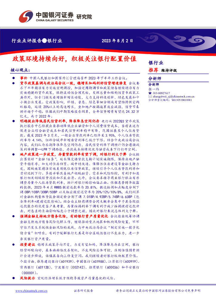 中国银河:银行业行业点评报告:政策环境持续向好,积极关注银行配置价值.pdf