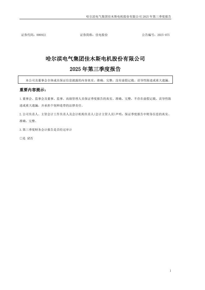 000922-佳电股份:2025年三季度报告.pdf