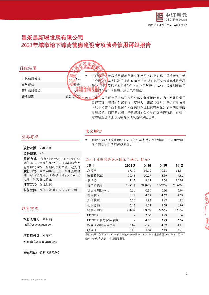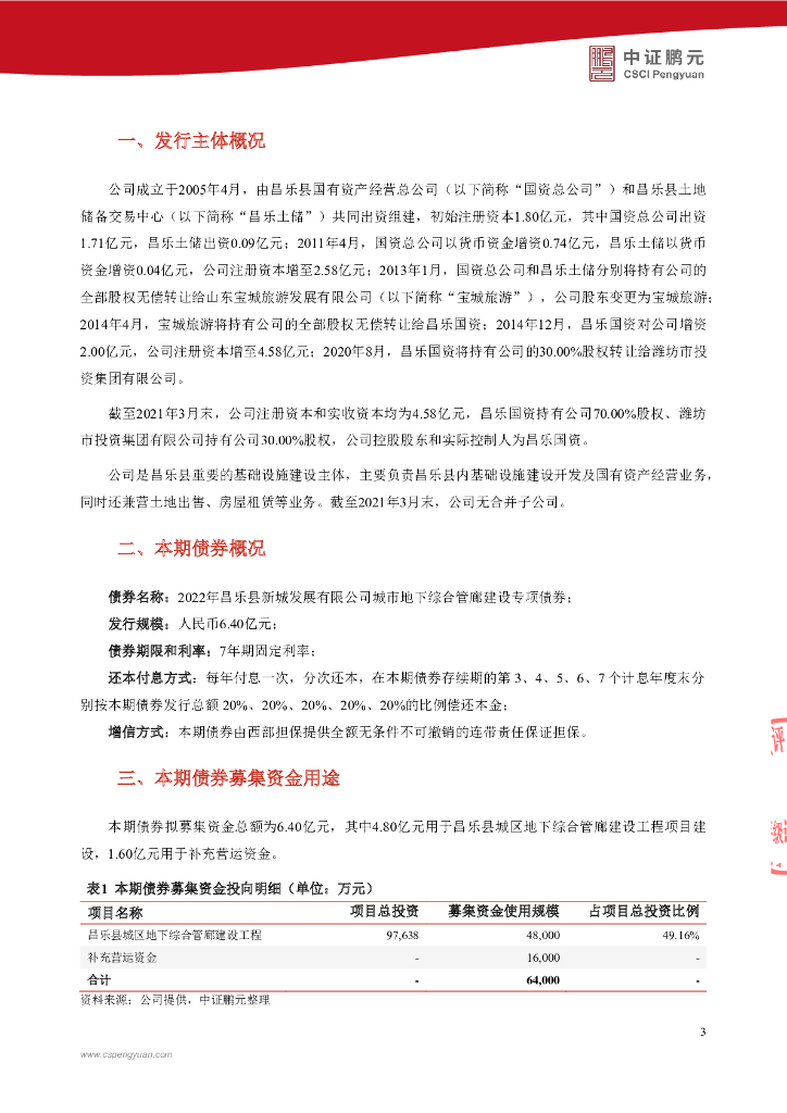 鹏元:昌乐县新城发展有限公司2022年城市地下综合管廊建设专项债券信用评级报告.pdf