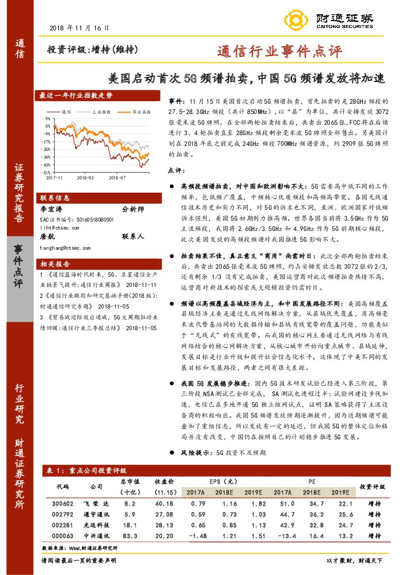 财通证券:通信行业事件点评:美国启动首次5G频谱拍卖,中国5G频谱发放将加速.pdf