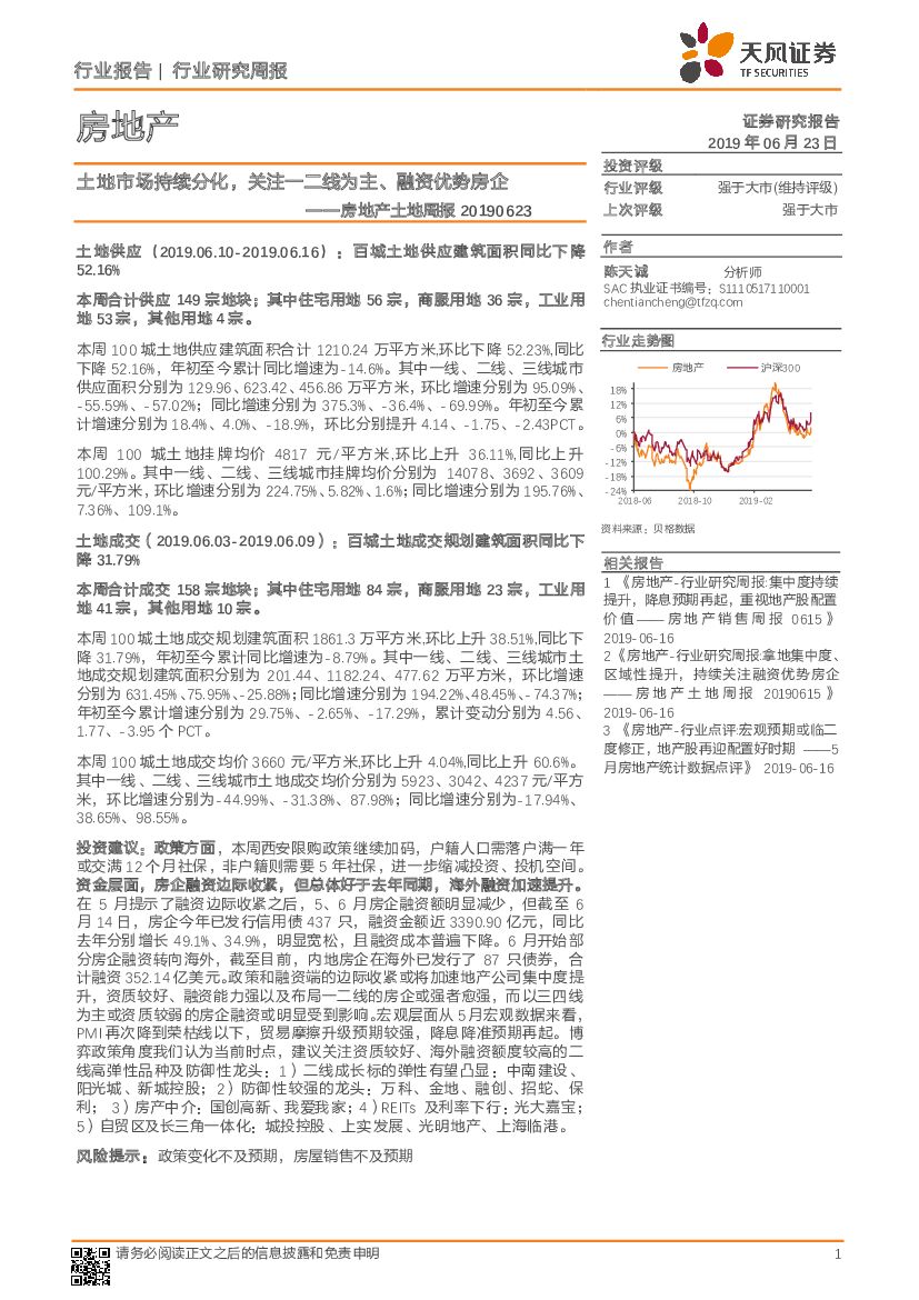 天风证券:房地产土地周报:土地市场持续分化,关注一二线为主、融资优势房企.pdf