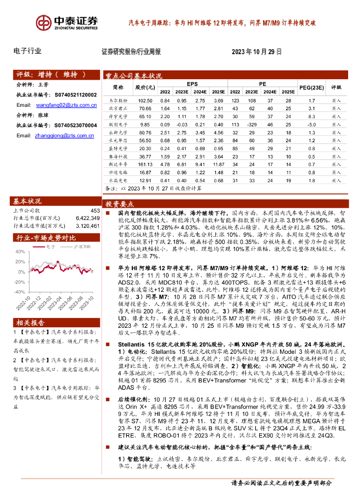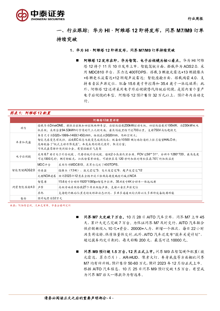 中泰证券:汽车电子周跟踪:华为HI阿维塔12即将发布,问界M7/M9订单持续突破.pdf