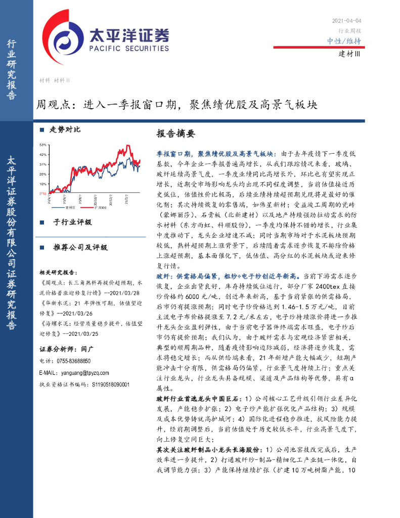 太平洋证券:建材Ⅲ周观点:进入一季报窗口期,聚焦绩优股及高景气板块.pdf