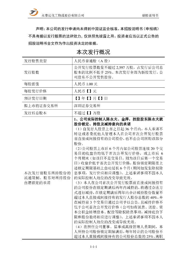 永泰运化工物流股份有限公司深交所主板IPO上市招股说明书.pdf
