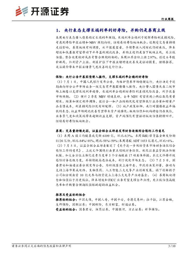 开源证券:非银金融行业周报:央行表态支撑长端利率利好寿险,并购仍是券商主线.pdf