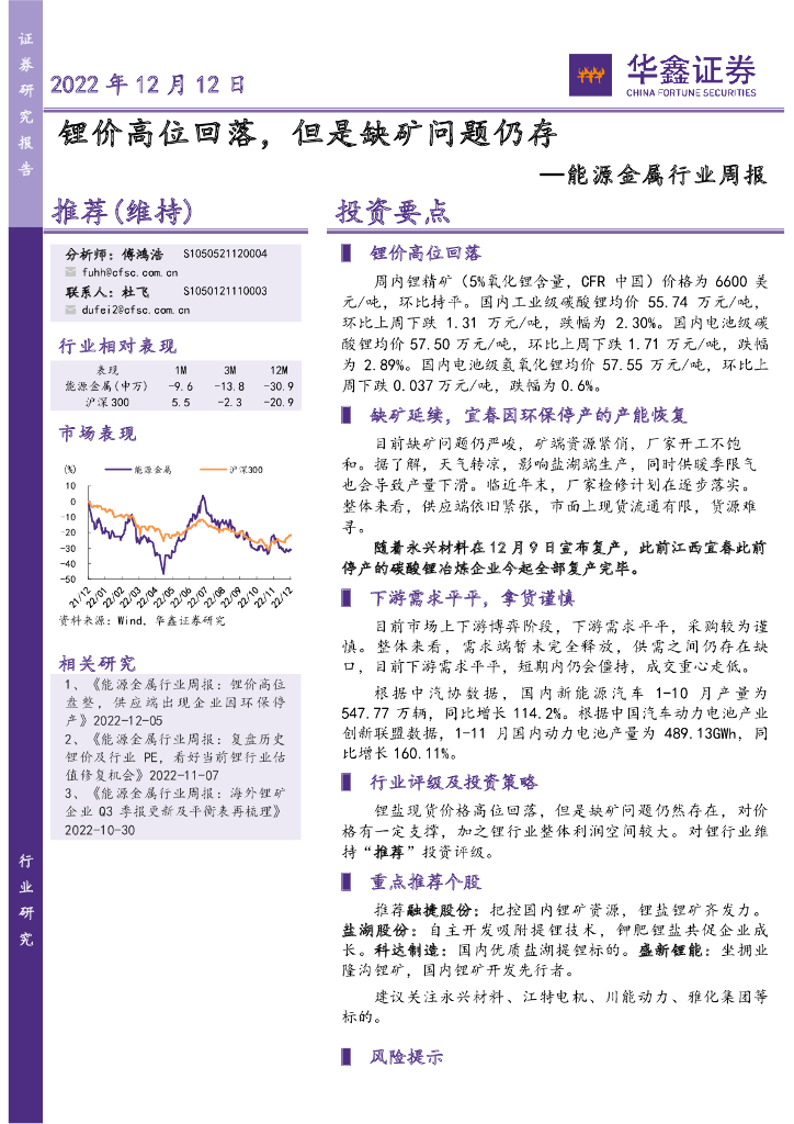 华鑫证券:能源金属行业周报:锂价高位回落,但是缺矿问题仍存.pdf