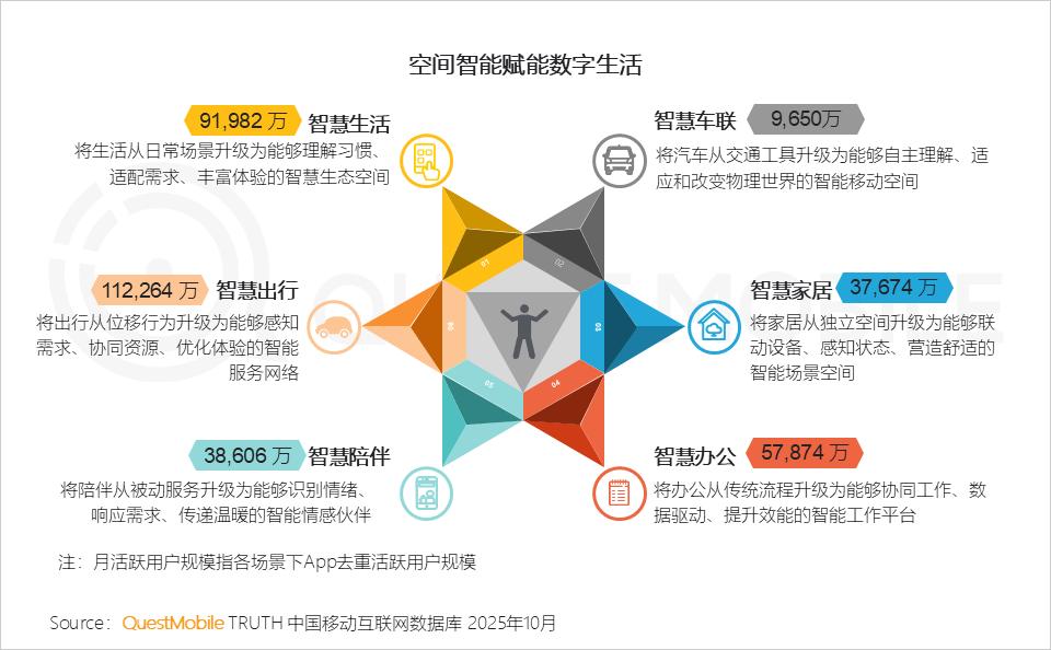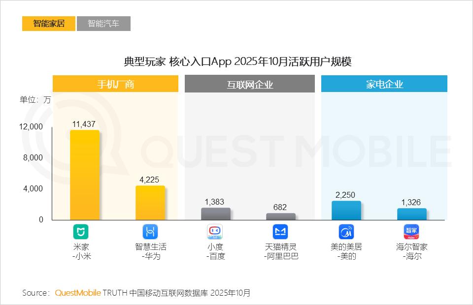 QuestMobile数据显示,2025年10月智能家居类App用户规模达3.83亿,月人均使用次数60.7次,同比分别增长14.3%、8.0%。